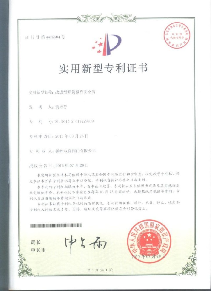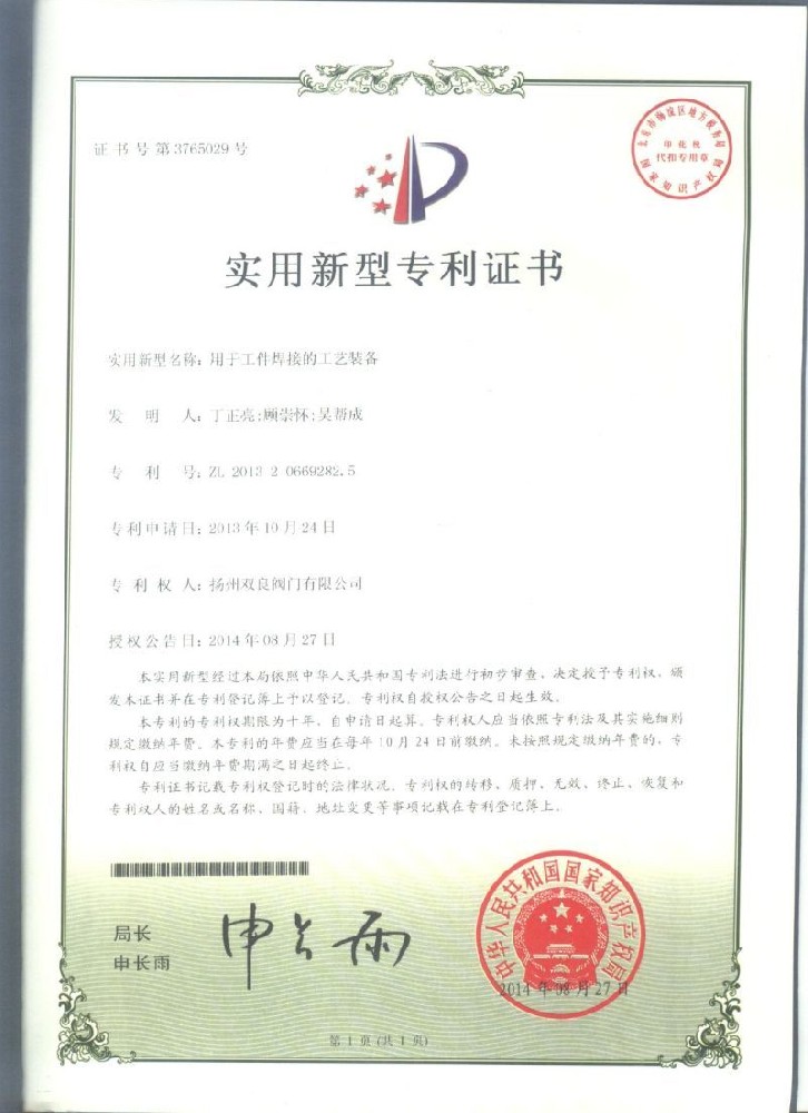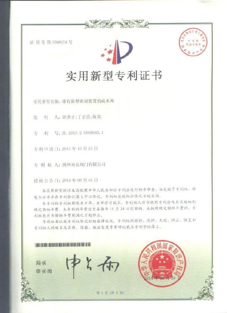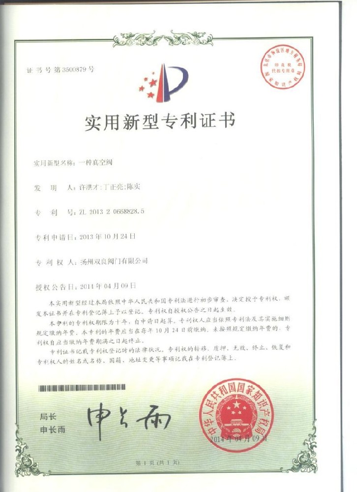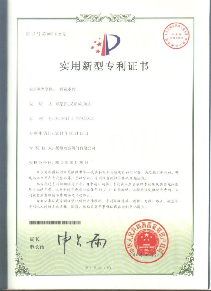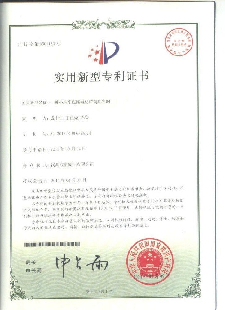 實用(yòng)新型專利證書(shū)