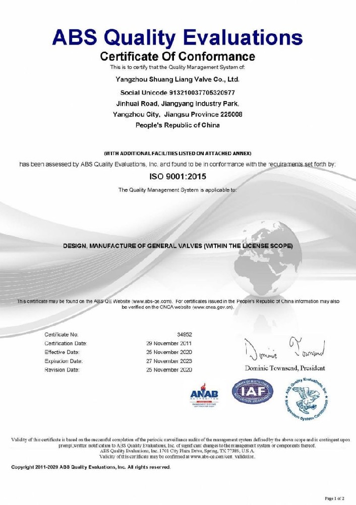 ISO9001質保體系(xì)證書