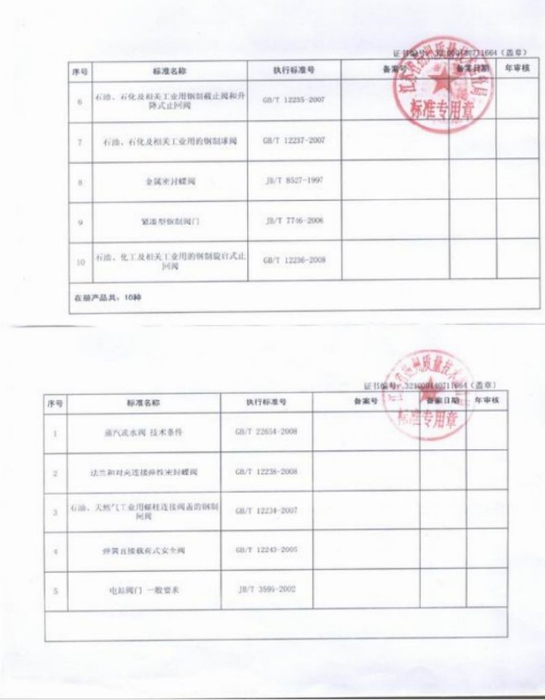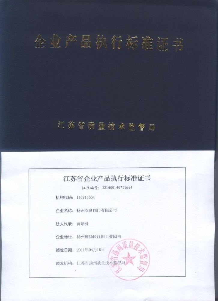 産品執行标準(zhun)證書