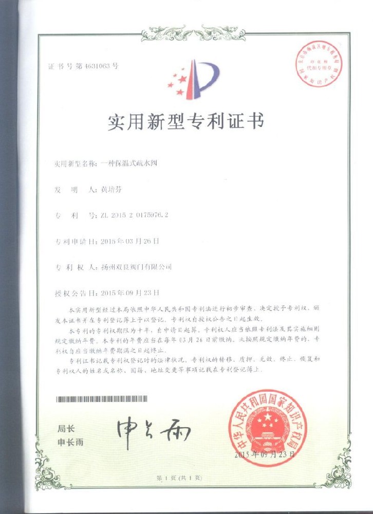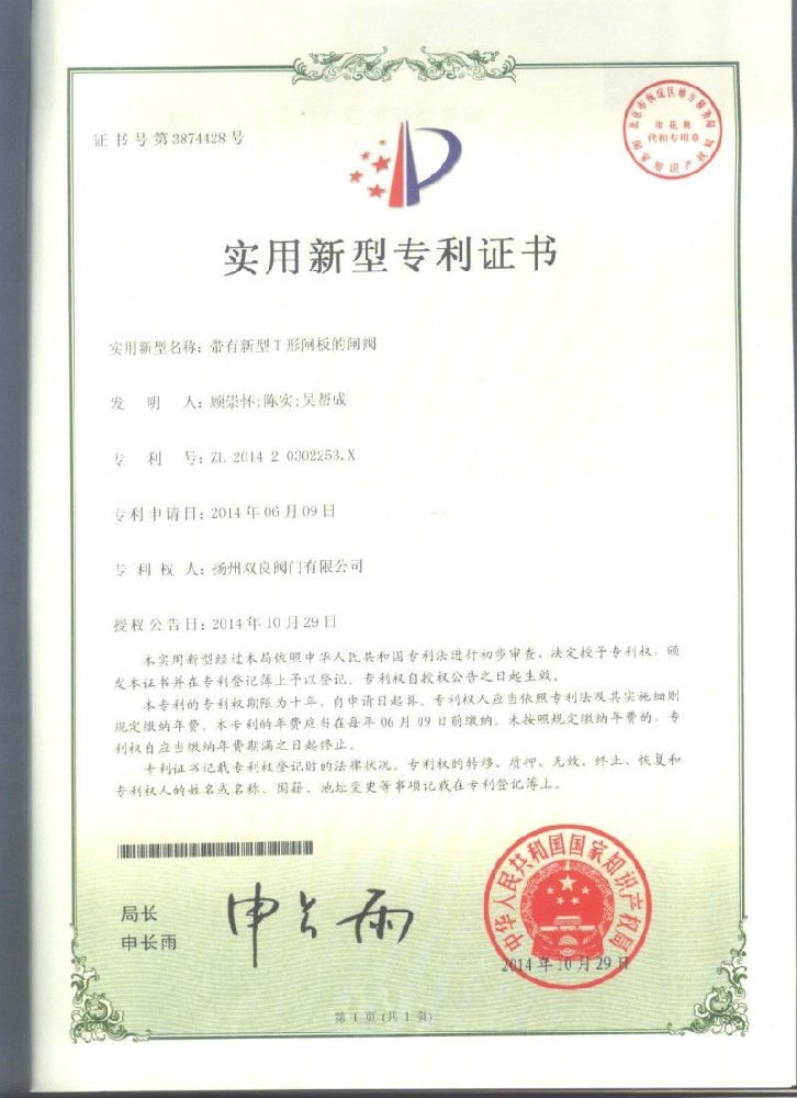 實用(yòng)新型專利證書(shu)